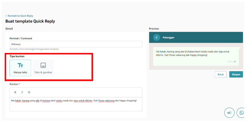 - Pilih jenis konten yang hendak digunakan, terdiri dari ‘Hanya Teks’ dan ‘Teks & Gambar’.