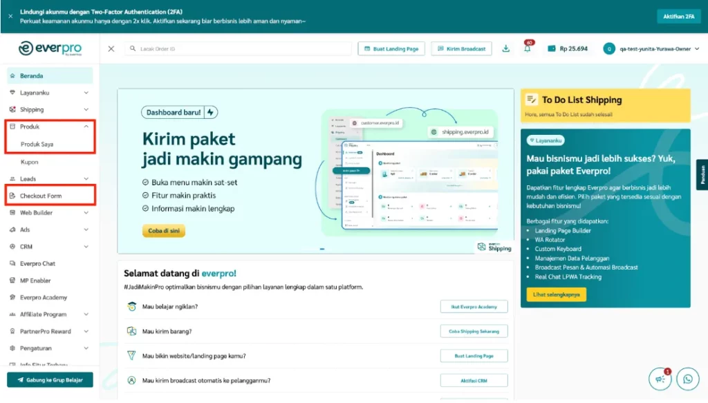 1. Masuk ke Everpro Dashboard.