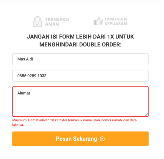 Dalam beberapa case, pengguna menerima pesanan palsu (fake order) melalui Formulir Checkout (CO Form), di mana pelanggan mengisi data yang tidak valid seperti nama palsu, alamat tidak lengkap, atau nomor WhatsApp yang tidak aktif. Kondisi ini menyebabkan inefisiensi bagi tim Customer Service (CS) saat melakukan konfirmasi pesanan, meningkatkan CPR (Cost per Result) dari real order, serta menurunkan kepercayaan pengiklan terhadap platform yang banyak menerima fake order.