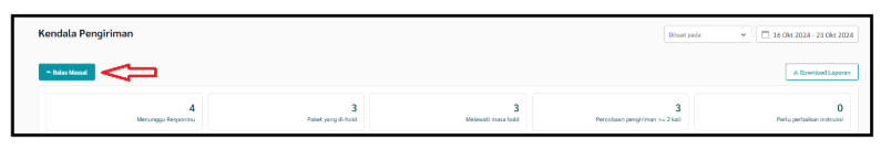 Penjual/pengirim juga dapat memberikan feedback secara massal (bulky) melalui Dashboard Kendala Pengiriman. Penjual/pengirim bisa klik button Balas Massal.