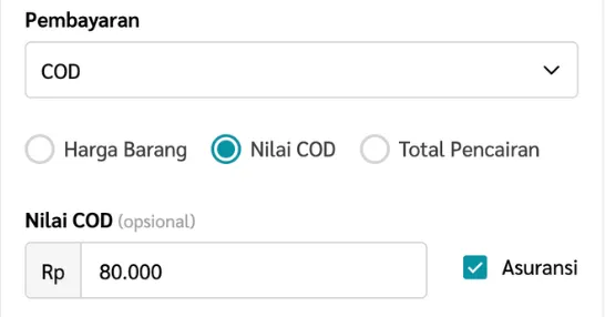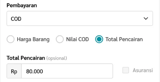 i. Jika kamu memilih opsi ini, kamu dapat memasukan nilai Total COD yang akan ditagihkan ke customer.
