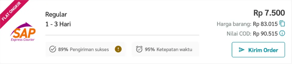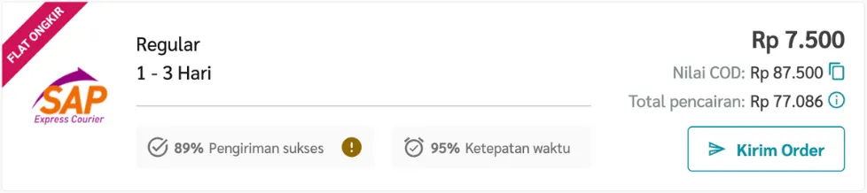 iv. Nilai COD adalah Harga Barang + Ongkos Kirim Kurir.