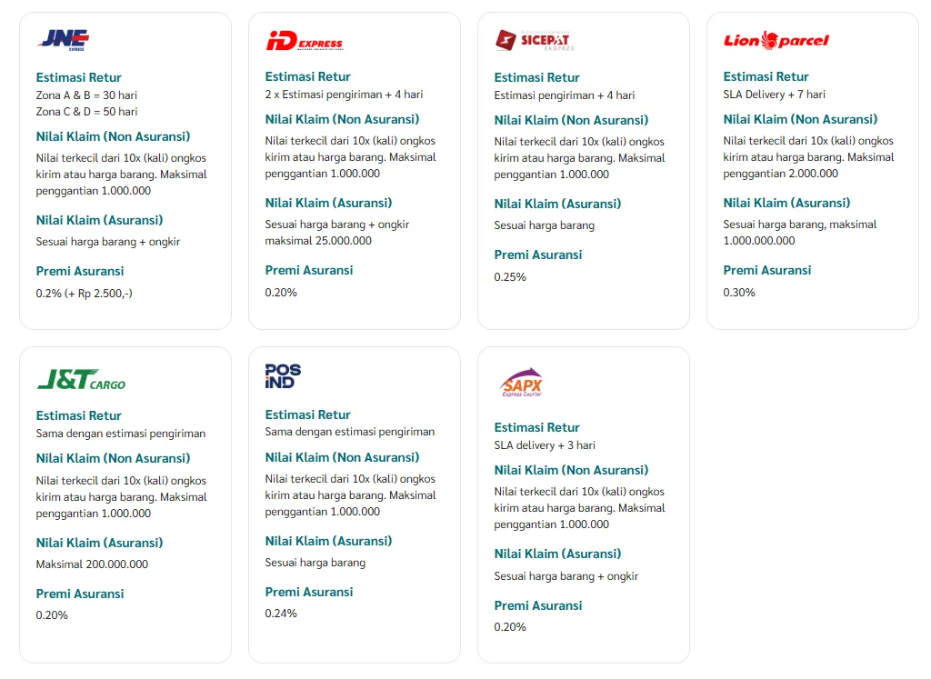 Sesuai harga barang dengan ketentuan dari masing-masing ekspedisi - Detail Klaim masing-masing Ekspedisi: